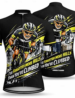 Masculino Camisa para Ciclismo Jersey em declive Geométrica Nunca subestime um velho com uma bicicleta. Manga Curta Moto Camisa com 3 bolsos traseiros Resistente a UV Secagem Rápida Com bolsos Zíper