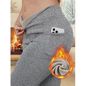 Mulheres Calças de ioga Leggings forradas de lã Leggings de ioga com bolso para telefone Cintura Alta Pilates Treino de Ginástica Exercite-se Meia-calça Côr Sólida Preto Azul Marinho Escuro Cinzento