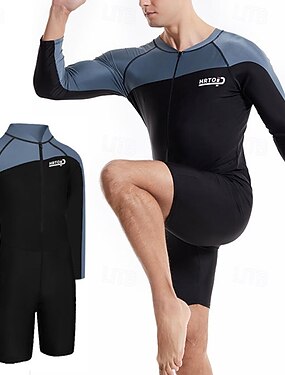 Homens Roupa de surf Maiôs de uma peça Bloqueio de cores Proteção Solar UV Secagem Rápida Manga Longa Roupa de Banho Praia Esportes Aquáticos Natação Primavera
