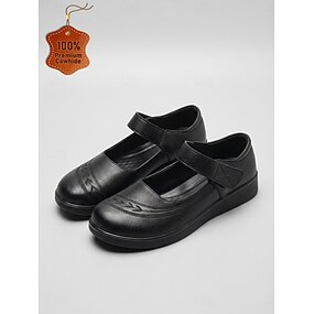 Sapatilhas femininas pretas estilo Mary Jane, confortáveis – com tira ajustável, em couro, com amortecimento, ideais para o trabalho e escritório. &uso diário