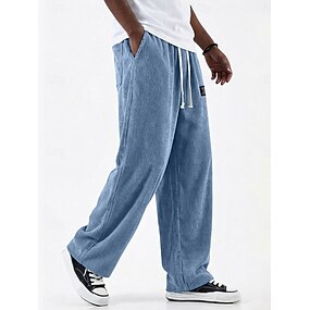 Homens Calças de linho Calças Calça verão Calças de praia Com Cordão Cintura elástica Perna reta Tecido Conforto Respirável Comprimento total Ao ar livre Feriado Praia Férias Moda Preto Branco