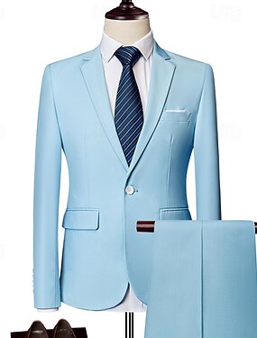 Homens Blazer Conjunto O negócio Coquetel Festa de Casamento 2 Peças Moda Casual Primavera Outono Poliéster Tecido Bolsos Botões Confortável Não Trespassado Jaqueta esporte Prata