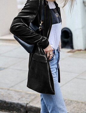 Mulheres Blazer Blazers de veludo Confortável Bolsos Moda Tecido Festa Festa / Noite Padrão Aberto para a Lateral Normal Manga Longa agasalhos Azul Preto Vinho Outono Inverno