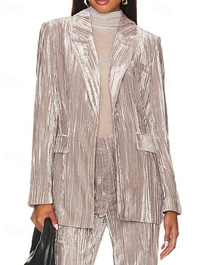 Mulheres Blazer Blazers de veludo Confortável Bolsos Botões Moda Tecido Festa Festa / Noite Para Noite Padrão Aberto para a Lateral Normal Manga Longa agasalhos Preto Vinho Verde Escuro Outono Inverno