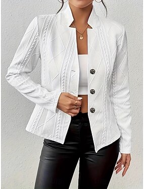 Mulheres Blazer Confortável Respirável Botões Moda Moderno Tecido Trabalho Diário Padrão Colarinho Chinês Normal Manga Longa agasalhos Rosa Claro Preto Branco Primavera Outono