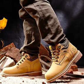 Tênis de caminhada masculino em couro sintético marrom, durável e respirável, ideal para aventuras ao ar livre e viagens casuais.