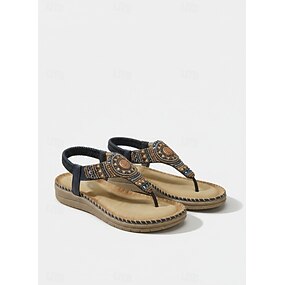 Mulheres Férias Resort ao ar livre Verão Pedrarias Miçangas Sem Salto Ponta Redonda Boêmia Férias Couro Sintético Mocassim Azul Marron