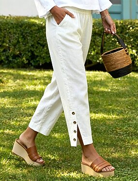 Mulheres Calças Calça casual Calça verão Calças de praia Férias Moda Casual Diário Mimolet Cintura Alta Côr Sólida Tecido Bolsos Cintura elástica Conforto Secagem Rápida Respirável Sem Elasticidade