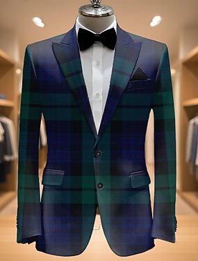 Homens Xadrez Jaqueta Blazer Casaco Da Moda Confortável Respirável Artistíco Casual Diário Traje de festa para noite Bolsos Impressão 3D Botões Todas as Estações Entalhe Manga Longa Azul Roxo Verde
