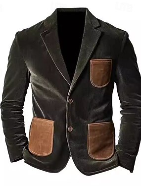 Homens Blazer de veludo cotelê Blazer O negócio Coquetel Festa de Casamento Moda Casual Primavera Outono Poliéster Bloco de cor Bolsos Botões Confortável Não Trespassado Jaqueta esporte Verde Tropa