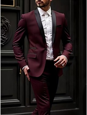 Masculino Smoking Ternos de negócios Casual Festa Vinho Verde Escuro Outono Terno Lapela Chanfrada Formal Cor Sólida Fino Conjunto de 2 peças