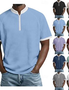 Homens Camisas Polo Waffle Camisas Polo Casual Diário Quarter Zip Manga Curta Moda Básico Bloco de cor Zíper Leve Verão Primavera Normal Preto Branco Vinho Azul Marinha Azul Céu Roxo Camisas Polo