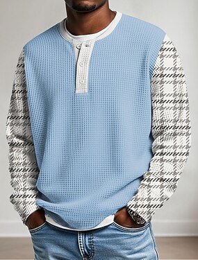 Homens Gráfico Geométrica Bloco de cor Camisa Waffle Henley Estilo casual Estilo Clássico Manga Longa Moda Designer Básico Casual Diário Ao ar livre Outono & inverno Outono Primavera & Outono Verde