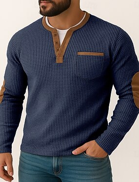 Homens Camiseta Waffle Camisa Waffle Henley Camisas masculinas com reforço nos cotovelos Manga Longa Henley Outono Primavera & Outono Côr Sólida Textura Moda Básico Casual Bloco de cor duas peças