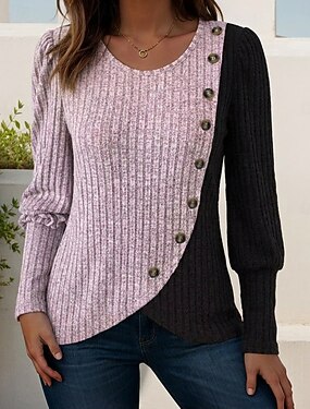 Mulheres Túnica Quarter Zip Côr Sólida Bloco de cor Elegante Vintage à moda Manga Longa Gola Redonda Tops regulares Diário Azul Preto Vinho Marron Verde Primavera Outono