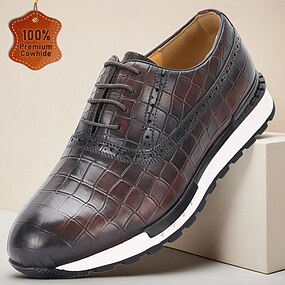 Homens Sapatos sociais Couro Couro de grão integral italiano Confortável Antiderrapante Com Cadarço Preto Marron Café
