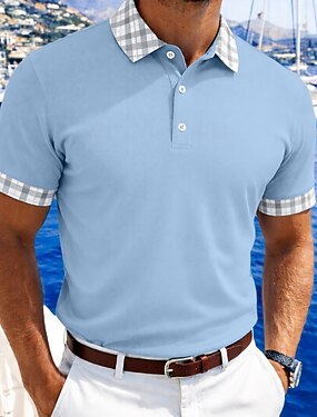 Homens Camiseta Polo Camisa de golfe Rua Casual Colarinho polo Clássico Manga Curta Moda Designer Bloco de cor Patchwork Frente do botão Primavera Verão Normal Azul Céu Preto Branco Amarelo Rosa Azul