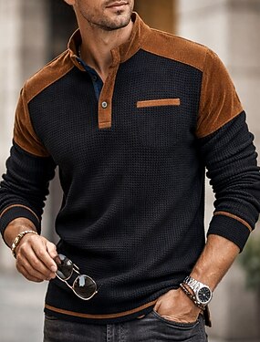 Homens Camisas Polo Waffle Textura Férias Rua Aberto para a Lateral Manga Longa Moda Lazer Bloco de cor Textura Zip Up Outono Primavera & Outono Normal Vinho Preto Branco Cinzento Azul Marinha cáqui