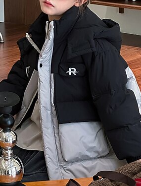 Infantil Para Meninas Jaqueta de penas Casaco puffer Bloco de cor Esportes Bolsos Mantenha Quente A prova de Vento Ao ar livre Casaco agasalhos 5-12 anos Inverno Azul Preto Verde