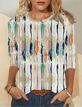 Mulheres Camiseta Zíper Quarter Zip Gráfico Geométrica Bloco de cor Tropical Havaiana à moda Manga Curta Gola Redonda Decote V Tops regulares Diário Esportes Para Noite Branco / azul Branco vermelho