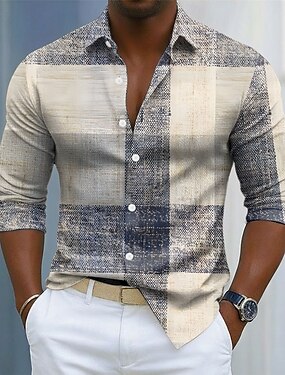 Homens Geométrica Bloco de cor Retalhos Camisa Social camisa de botão Manga Longa Moda Casual Ao ar livre Diário Streetwear Primavera Outono Aberto para a Lateral Impressão 3D Um bolso frontal Camisa