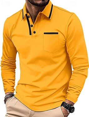 Homens Bloco de cor Riscas Camisas Polo de Rugby Manga Longa Camisas polo Lapela Clássico Moda Estampa 3D Moderno Casual Esportes Listas Outono Inverno Amarelo Vermelho Roxo