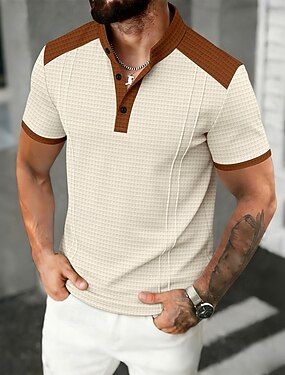 Homens Camisa Waffle Henley Camisetas Manga Curta Côr Sólida Tecido Moda Designer Confortável Bloco de cor Botões Henley Ao ar livre Casual Diário Verão Todas as Estações Preto Azul Marinha Marron