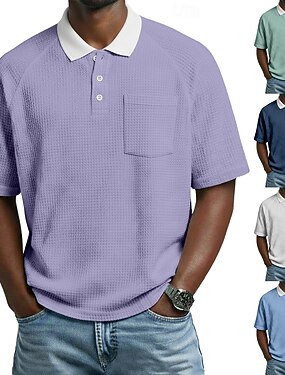 Homens Camisas Polo Waffle Textura Casual Clássico Manga Curta Moda Confortável Bloco de cor Bolsos Mangas Raglã Verão Primavera Primavera Verão Normal Preto Branco Verde Claro Azul Marinha Roxo cáqui
