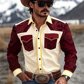 Homens Estampado Cashemere Estampa floral Étnico Camisa Social camisa ocidental Camisa de caubói Manga Longa Vintage retrô Diário Ao ar livre Roupa de Trabalho Outono & inverno Aberto para a Lateral