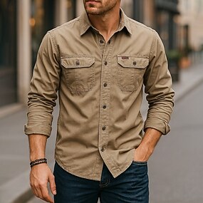 Homens Camisa casual Camisas de trabalho camisa de botão Azul Marinho Escuro Caqui Cinzento Claro Verde Tropa Manga Longa Cor Sólida / Simples Lapela Férias Feriado Botão para baixo Roupa Algodão
