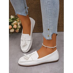 Mocassim Branco Feminino com Franja – Sapatos Slips de Couro Sintético Macio para Trabalho Uso em Fins de Semana Viagens e Looks Smart Casual