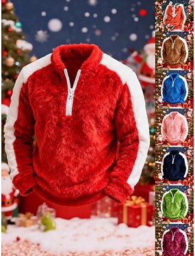 Homens Moletom Moletom com zíper Preto Rosa Vermelho Azul Marron Meio Zíper Bloco de cor Tecido Presentes de Natal Diário Feriado Poliéster Natal Roupa de rua Casual Inverno Roupa Moletons Moletons
