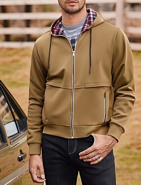 Homens Moletom Full Zip Hoodie Preto Vinho Marron Cinza Claro Com Capuz Xadrez Zip Up Bolsos Desportos e Ar livre Diário Feriado Poliéster Roupa de rua Básico Casual Primavera Outono Roupa Moletons