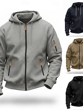 Homens Moletom Full Zip Hoodie Preto Cáqui Cinzento Com Capuz Tecido Zíper Bolsos Desportos e Ar livre Diário Feriado Poliéster Roupa de rua Básico Casual Primavera Outono Roupa Moletons Moletons