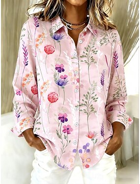 Mulheres Camisa Social Botões Imprimir Floral Gráfico Vintage à moda Moderno Manga Longa Colarinho de Camisa Tops longos Diário Branco Amarelo Rosa Verão Primavera