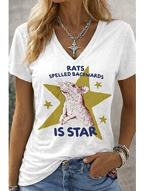 Camiseta feminina com estampa 3D de letras e frases engraçadas, estilo animal, casual, manga curta, decote V, ideal para o dia a dia, passeios e fins de semana. Disponível nas cores branca, cinza e