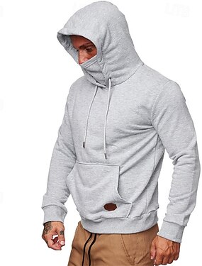 Homens Camiseta T-shirt Camisa de manga longa Manga Longa Com Capuz Primavera & Outono Todas as Estações Côr Sólida Moda Designer Básico Cordões Bolso Com Zíper Férias Rua Casual Cinzento Escuro