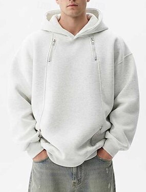 Homens Moletom Preto Cinzento Com Capuz Tecido Zíper Desportos e Ar livre Diário Feriado Poliéster Roupa de rua Básico Casual Primavera Outono Roupa Moletons Moletons