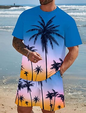 Homens Coqueiro 2pcs Conjuntos de camisetas Tops de verão Manga Curta Calças curtas Gola Redonda Desporto Designer Casual Ao ar livre Férias Diário Estampado Verão Rubi Vermelho