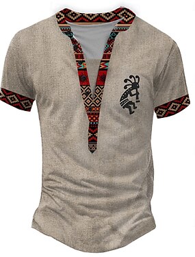 Homens Ética / Africano Camiseta Camisa Henley Camisetas Manga Curta Designer Básico Étnico Ao ar livre Casual Diário Verão Preto Verde Claro Azul Claro cáqui Henley Camiseta Henley