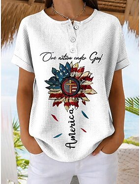 Dia da Independência Americana Camiseta Waffle Feminina Estampada Gráfica Bandeira Estilosa Clássica Casual Manga Curta Gola Redonda Tops Longos Diários Azul Preto Branco Vermelho Verão Primavera