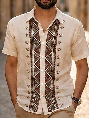 Homens Geométrica Étnico Flores Camisa Social Camisa Guayabera camisa de botão Manga Curta Vintage retrô Diário Ao ar livre Férias Verão Primavera Aberto para a Lateral Impressão 3D Camisa tipo linho