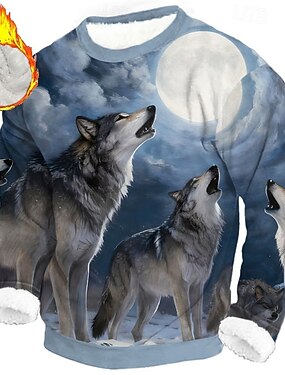 Homens Lobo Impressão 3D Tosão Moletom Diário Casual Fantasia. Gola Redonda Casa Festa Presente Streetwear Azul 1 Azul 3# Azul 2# Impressão 3D Outono Inverno Designer S M L XL XXL XXXL