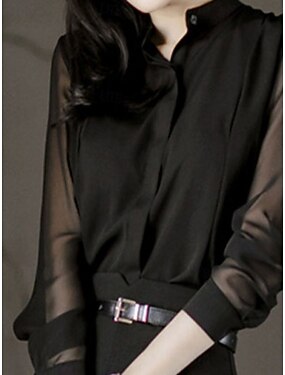 Mulheres Camisa Social Blusa Botões Tecido à moda Básico Manga Longa Colarinho Chinês Tops regulares Diário Escritório Feriado Preto Verão Primavera