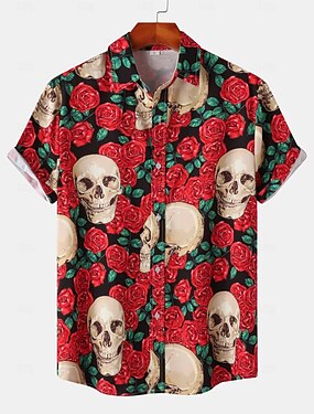 Homens Caveiras Flores Camisa Social camisa de verão Camisa casual Manga Curta Vintage Terror Férias Roupa Diária Festa temática Primavera Verão Lapela Imprimir Branco+Preto Preto Branco Vermelho Azul