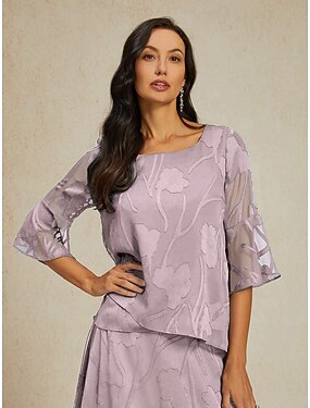 Mulheres Camisa de renda Blusa Tops elegantes Tops de chiffon Barra Assimétrica Côr Sólida Floral Gráfico Elegante à moda Básico Meia Manga Mangas Evasê Decote Canoa Tops longos Diário Trabalho