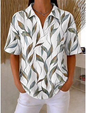 Mulheres Camisa Waffle Camisa casual Tops de verão Gráfico Folha Geométrica Vintage à moda Sem Manga Tops regulares Casual Diário Ao ar livre Azul Branco Verão Primavera Outono