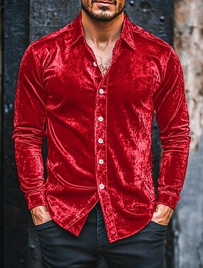 Homens Camisa Social Camisa casual Camisa de Natal Camisa de veludo Vinho Azul Royal Manga Longa Côr Sólida Tecido Colarinho de Camisa Casual Diário Botões Roupa Veludo Natal Elegante Quente Ativo
