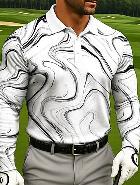 Homens Abstrato Geométrico Pólo Manga Longa Camisas polo Lapela Casual Roupa Esportiva Roupa Diária Impressão 3D Botões Primavera Outono Inverno Azul Céu Preto Branco