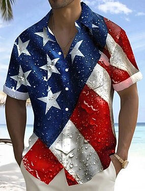 Dia da Independência Homens American US Flag 4 de julho - 250º aniversário dos EUA Patriótico Camisa Social camisa de verão camisa de botão Manga Curta Moda Casual Feriado Verão Primavera Aberto para